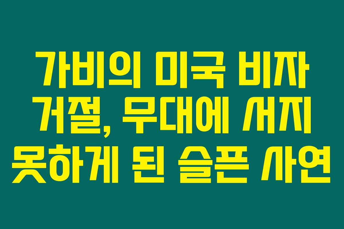 가비가 지원했던 비자가 무엇인지에 대한 구체적인 정보는 알려지지 않았지만, 비자 심사에서 불합격이 될 경우 여러 가지 요인이 작용할 수 있습니다. 저는 비자 신청 시 필요한 서류들, 재정 능력, 그리고 이전의 여행 기록 등 다양한 요소가 영향을 미친다고 느꼈어요.