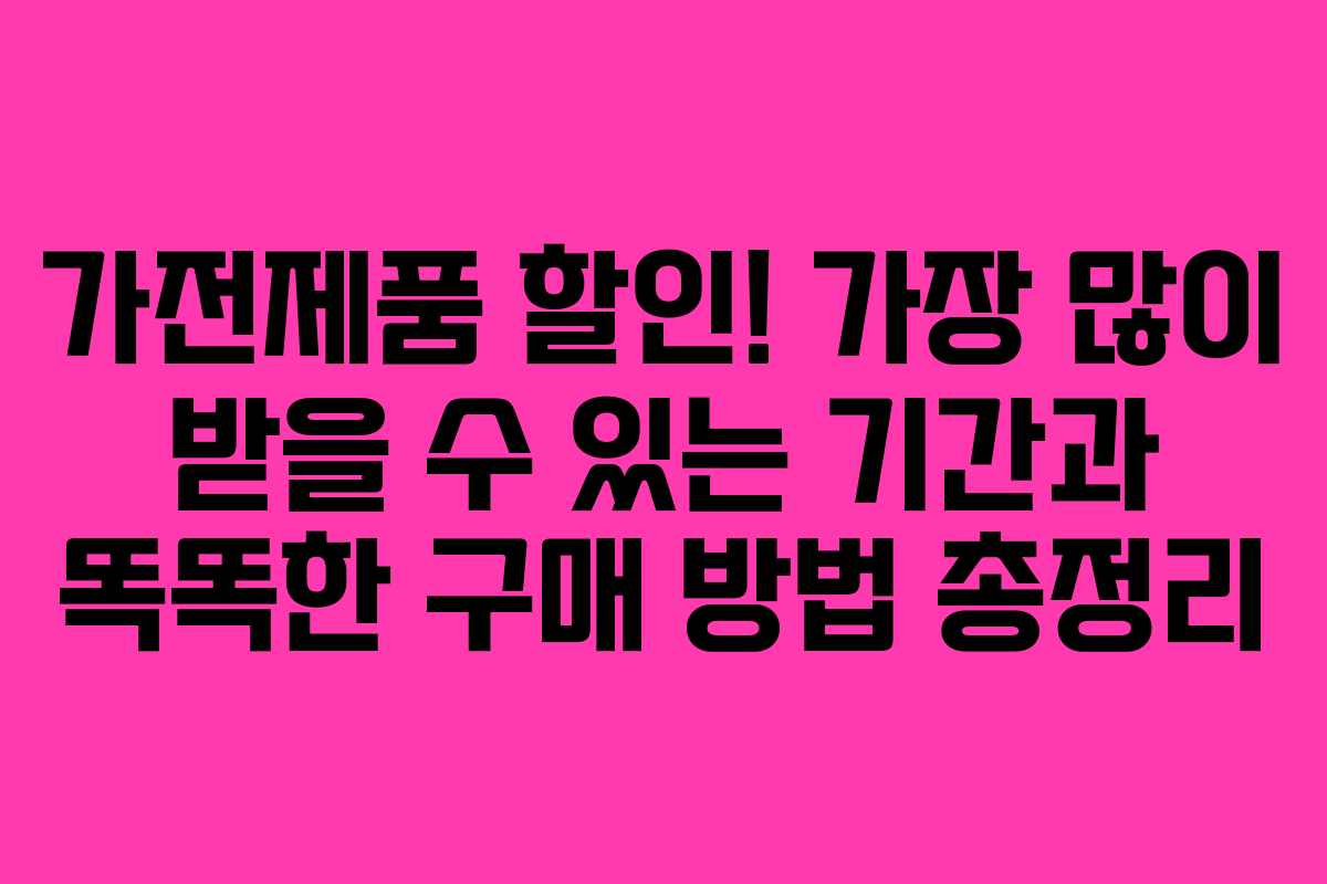 가전제품은 우리 생활에서 필수적인 아이템으로, 그 가격이 상당하기 때문에 효율적인 구매 전략이 필요합니다. 이번 글에서는 가전제품을 가장 저렴하게 구매할 수 있는 시기와 방법을 정리하여, 현명한 소비를 도와드리겠습니다.