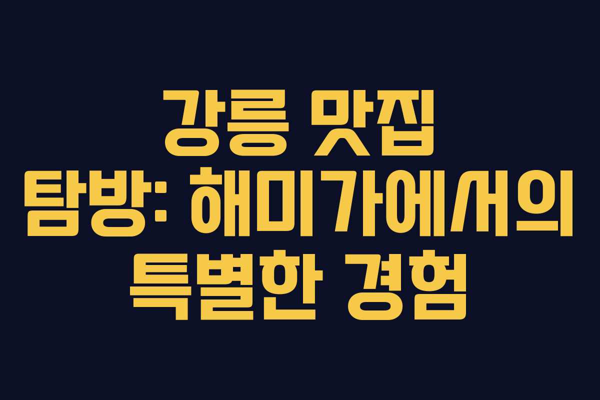 강원도 강릉에는 숨겨진 맛집이 많이 있습니다. 그중에서도 해미가는 최근 많은 사람들에게 사랑받고 있는 로컬 맛집입니다. 오늘은 해미가를 직접 방문한 후기를 통해 이곳의 매력을 소개하겠습니다.