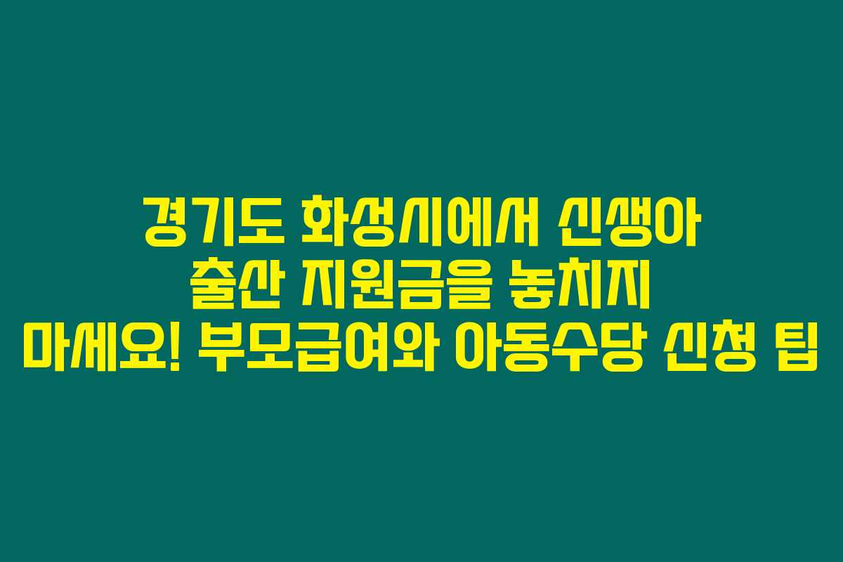 경기도 화성시에서 신생아 출산 지원금을 놓치지 마세요! 부모급여와 아동수당 신청 팁