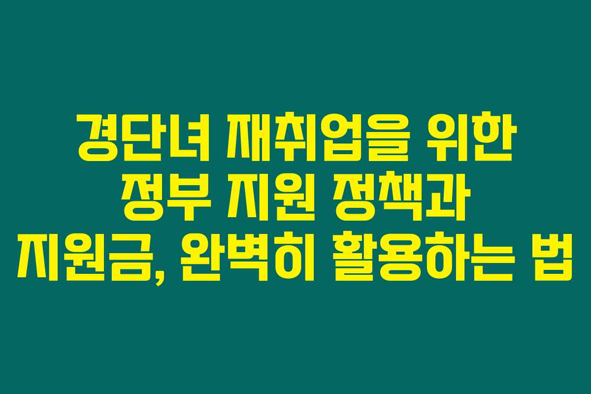 재취업을 원하는 경단녀라면 주목하세요. 정부에서는 경력단절여성을 위한 다양한 지원 정책과 지원금 프로그램을 운영하고 있어요. 특히 출산과 육아로 경력이 단절된 여성분들은 재취업의 어려움이 크죠. 그럴 때 정부가 제공하는 지원 정책을 이용하면 좋은 기회를 가질 수 있습니다. 아래를 읽어보시면 구체적인 지원 내용과 방법을 확인할 수 있어요.