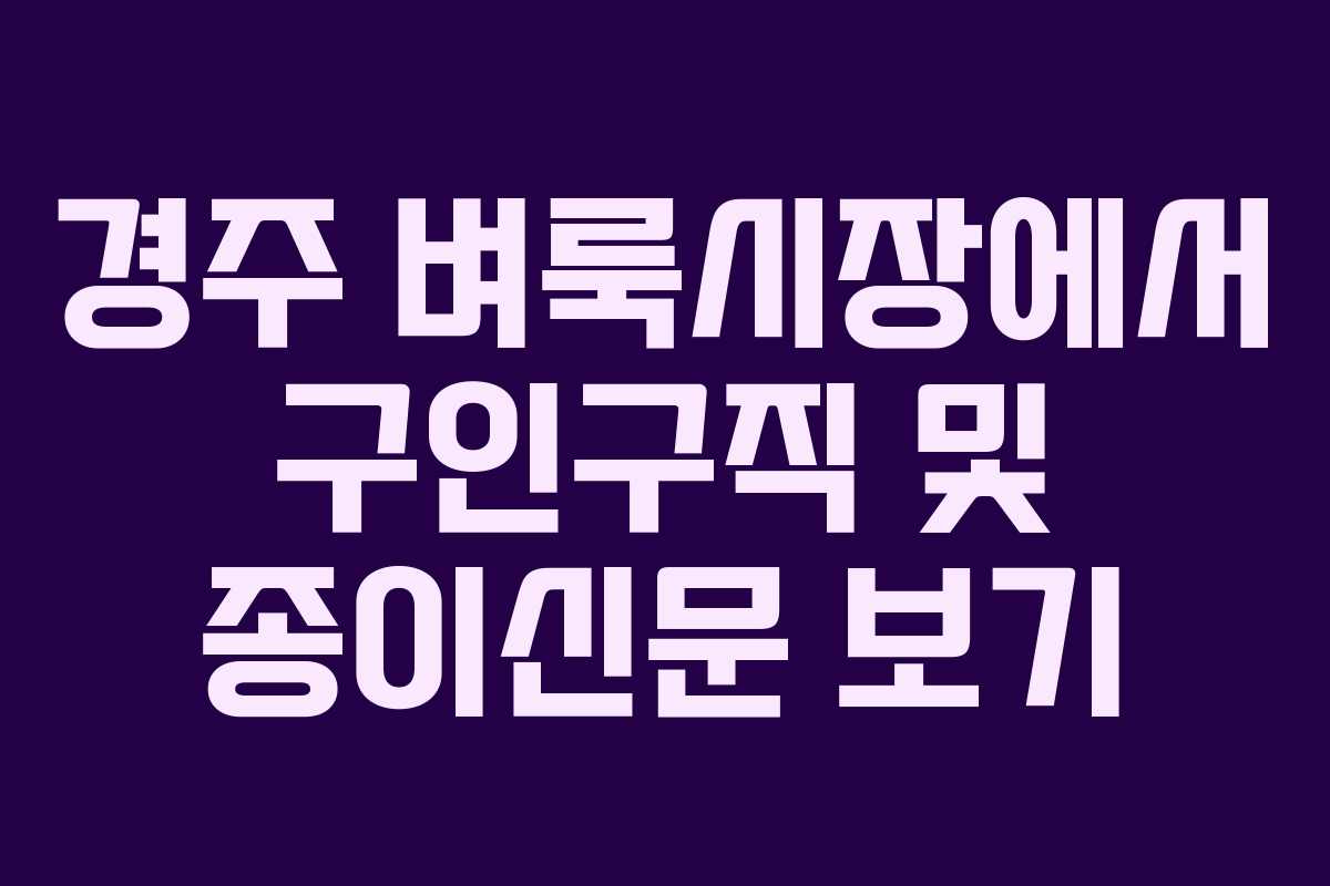 - SNS 활용: 벼룩시장 외에도 경주 지역의 구인구직 관련 SNS 그룹에 가입하여 추가 정보를 얻는 것도 유용합니다.