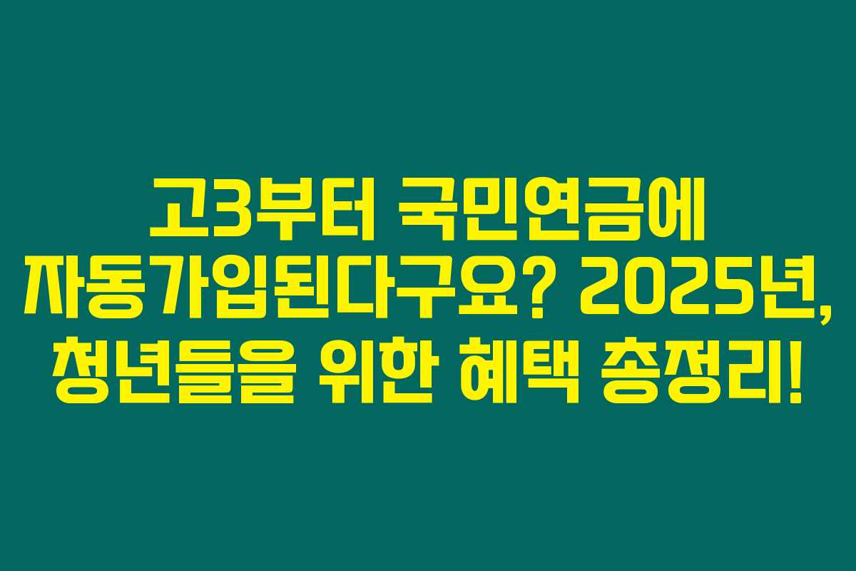 고3부터 국민연금에 자동가입된다구요? 2025년, 청년들을 위한 혜택 총정리!