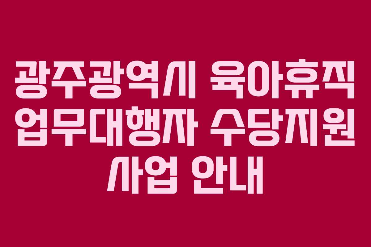 광주광역시 육아휴직 업무대행자 수당지원 사업 안내