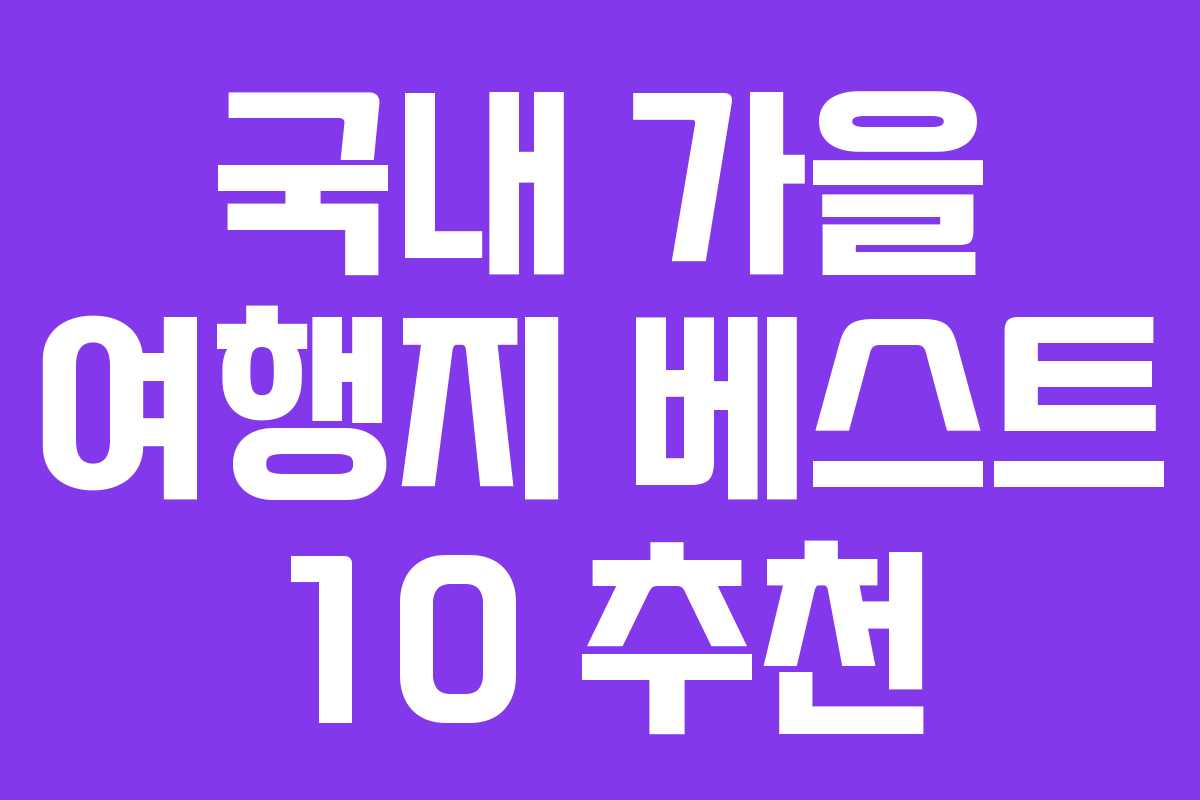 가을은 여행하기에 가장 적합한 계절 중 하나입니다. 시원한 바람과 함께 아름답게 물든 단풍을 즐기며 힐링할 수 있는 곳들이 많습니다. 이번 글에서는 국내에서 가볼 만한 가을 여행지 베스트 10을 소개합니다.