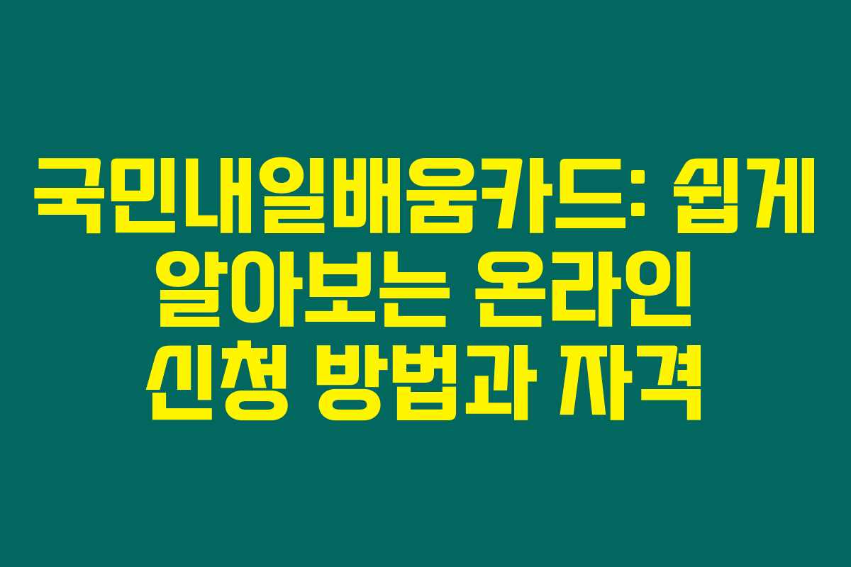 제가 직접 확인해본 결과, 국민내일배움카드는 대한민국 국민이라면 누구나 신청이 가능한 제도입니다. 이 제도를 통해 개인당 최대 500만 원의 훈련비를 지원받고, 직업 능력 개발 교육을 제공받을 수 있습니다. 이제 국민내일배움카드의 온라인 신청 방법과 자격에 대해 자세히 알아보도록 하겠습니다.