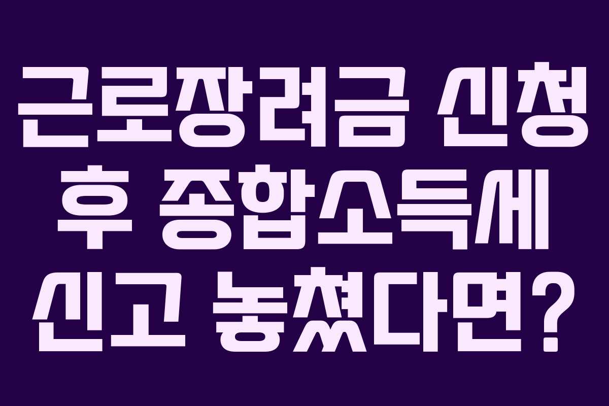 종합소득세 신고를 놓치면 근로장려금을 못 받나요?