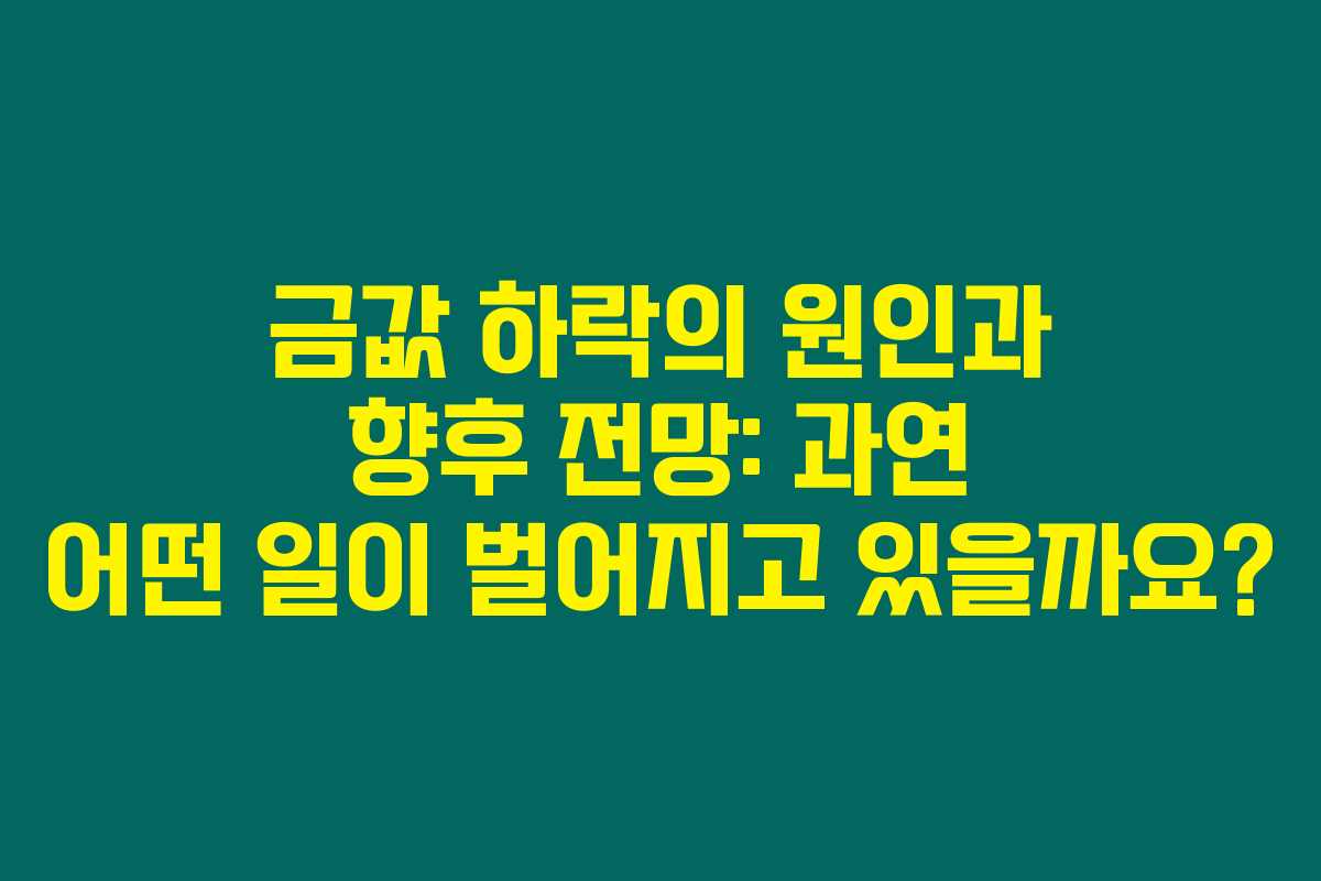 최근 금값이 예상 외로 급락하며 투자자들을 놀라게 하고 있습니다. 지금 금값의 하락 원인과 그에 따른 향후 전망을 알기 위해서는 이 글을 끝까지 읽어보셔야 해요. 금이 왜 이렇게 떨어졌을까요? 이번 변동은 단순한 조정인지, 아니면 더 큰 흐름의 시작인지 함께 알아보도록 해요.