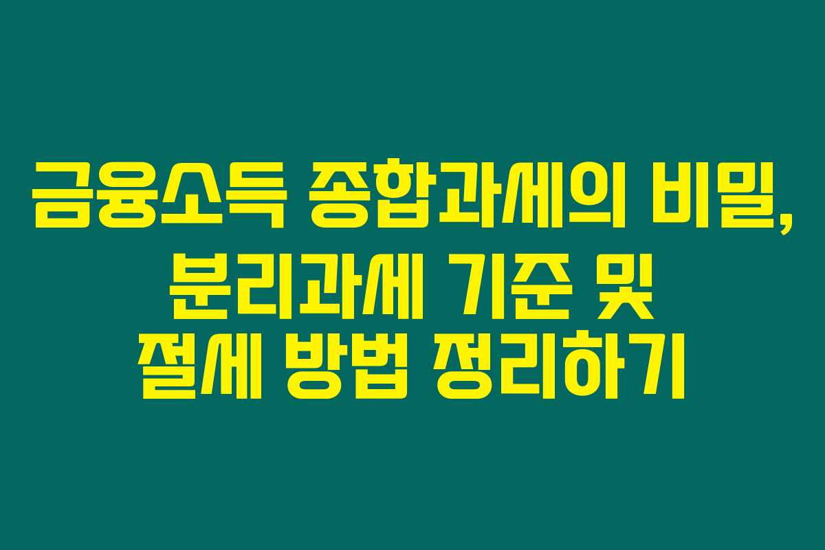 제가 직접 알아본 바로는, 금융소득 종합과세와 분리과세에 대한 이해는 최근 금리가 상승하면서 더욱 중요해졌습니다. 금융소득이 늘어나면서 종합과세대상자가 되는 것이 부담이 될 수 있지만, 절세 방법을 잘 알고 활용하면 쉽고 효율적으로 관리할 수 있습니다. 아래를 읽어보시면, 종합과세와 분리과세의 기준, 절세 방법에 대해 자세히 알아보실 수 있습니다.