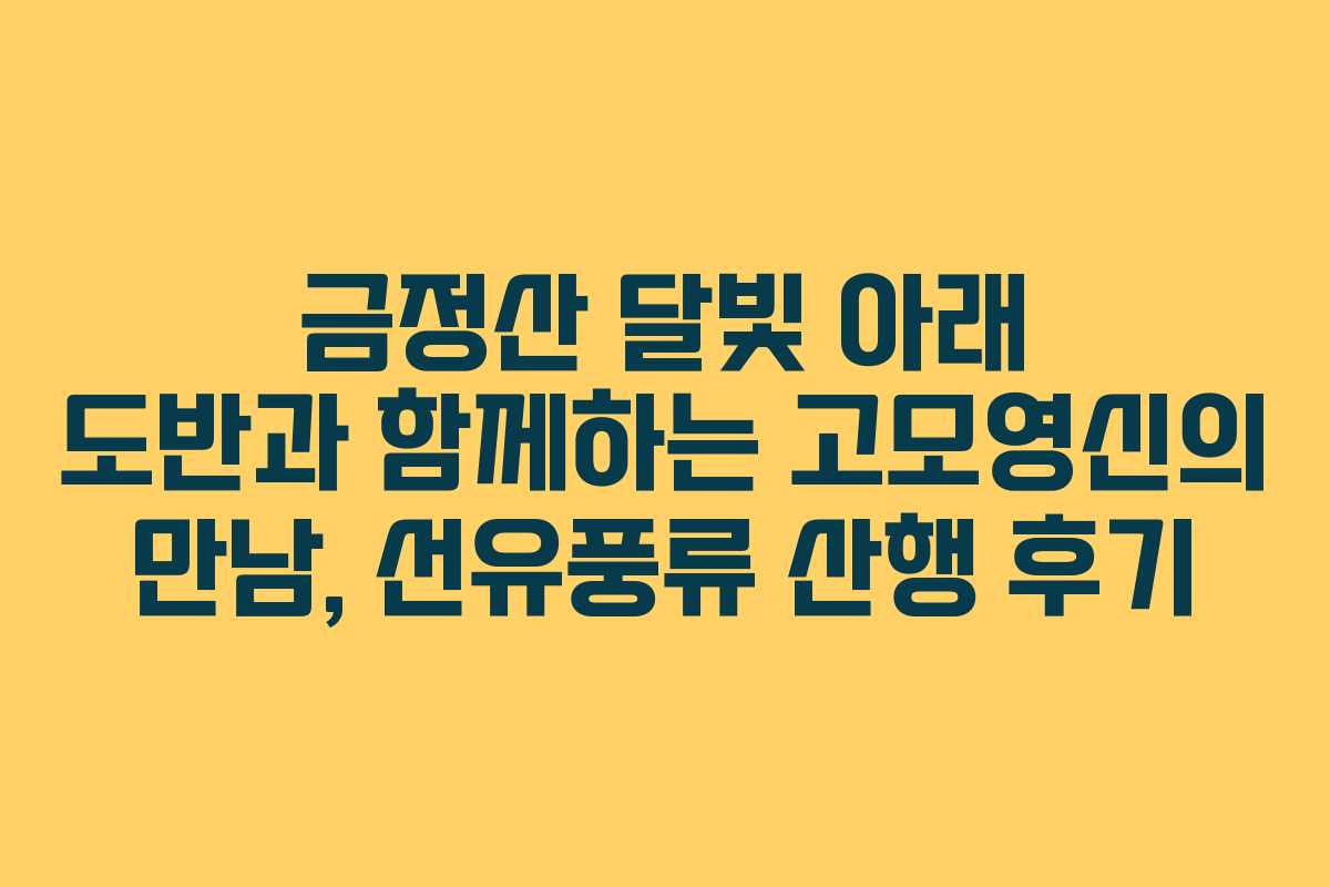 아래를 읽어보시면 달빛 아래 도반과 함께한 금정산의 산중기도 이야기와 그 속에 깃든 고모영신의 전설이 어떻게 피워졌는지 생생하게 느끼실 수 있습니다. 도반과의 동행이 주는 힘과 수행의 의미를 일상에 어떻게 녹여낼지 고민해보는 계기가 되길 바랍니다.