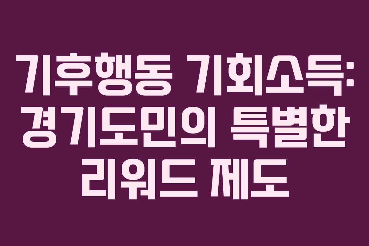 기후행동 기회소득: 경기도민의 특별한 리워드 제도