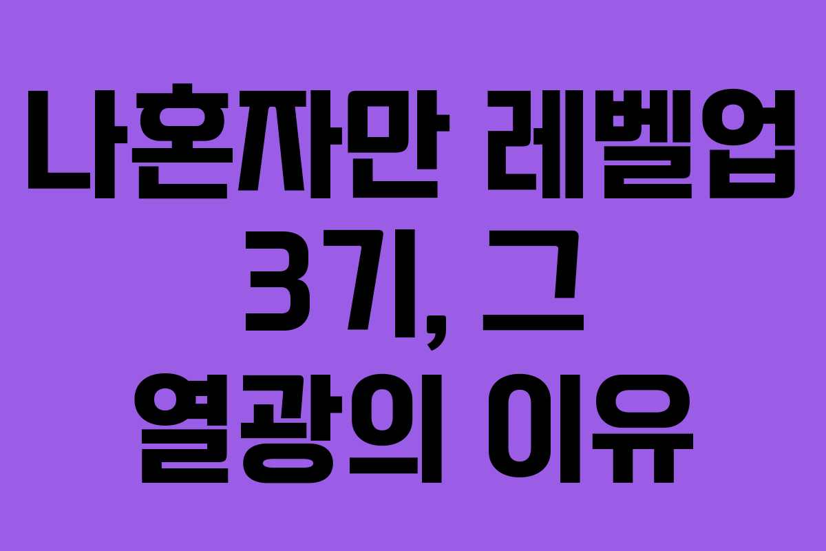 인기 웹소설과 웹툰을 원작으로 한 ‘나혼자만 레벨업’의 세 번째 시즌이 다가오면서 많은 팬들이 기대에 찬 모습을 보이고 있습니다. 이번 포스팅에서는 3기에 대한 기대와 열광의 이유를 자세히 살펴보겠습니다.
