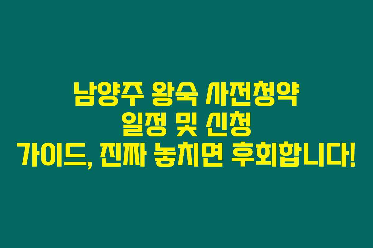 남양주 왕숙 사전청약의 중요한 일정을 확인하세요!