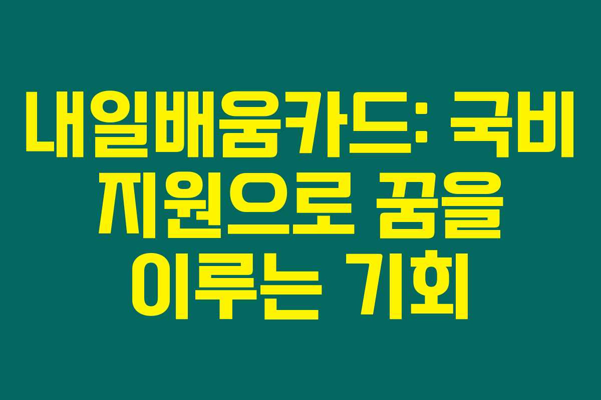 내일배움카드는 국비지원으로 교육을 받을 수 있는 기회를 제공합니다. 이를 통해 새로운 직업 기회를 발견하고 자신의 능력을 한층 더 발전시킬 수 있습니다.