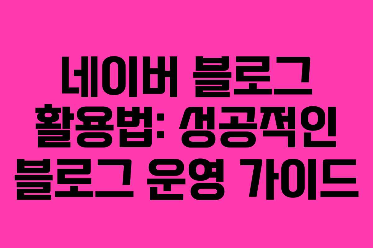 네이버 블로그 활용법: 성공적인 블로그 운영 가이드
