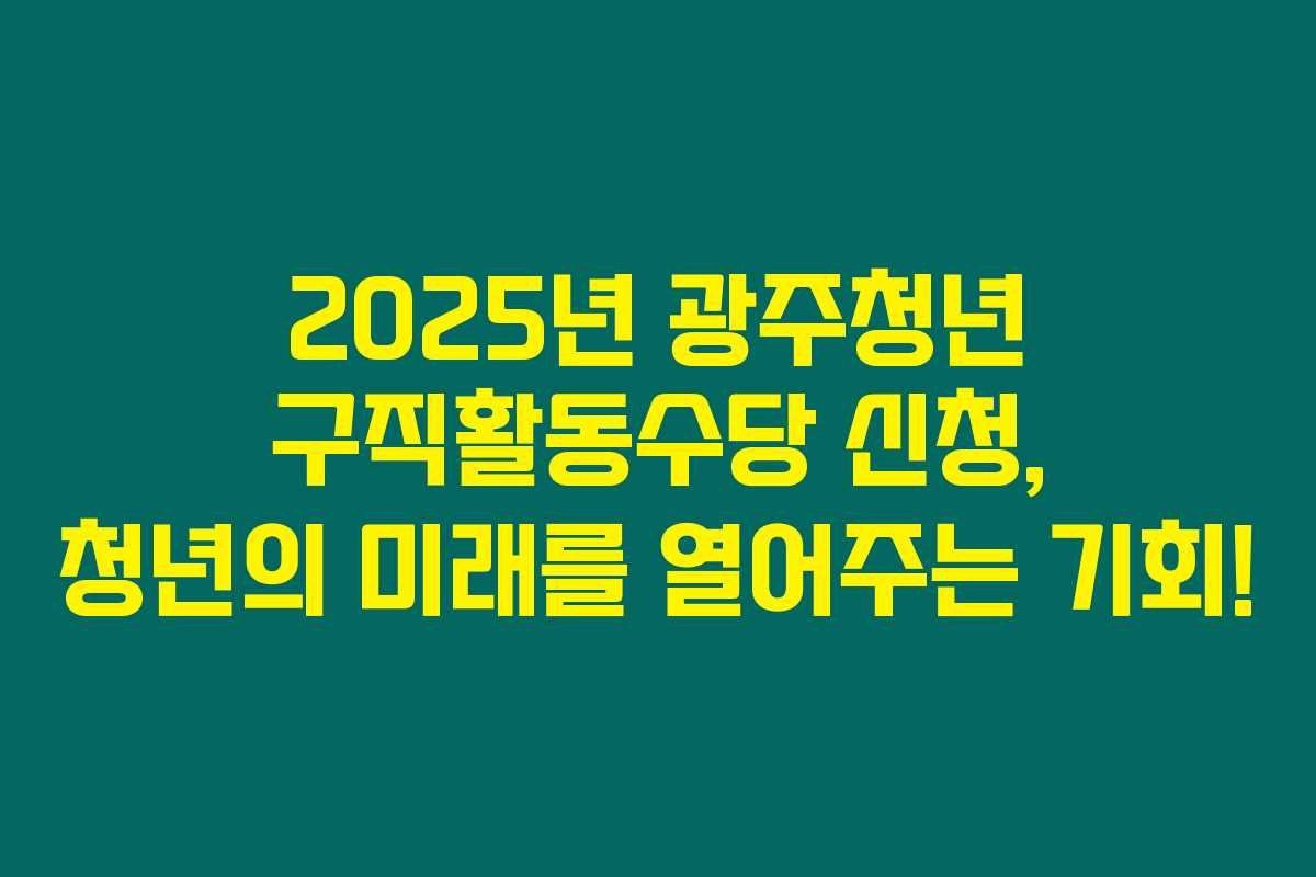 2025년 광주청년 구직활동수당 신청, 청년의 미래를 열어주는 기회!