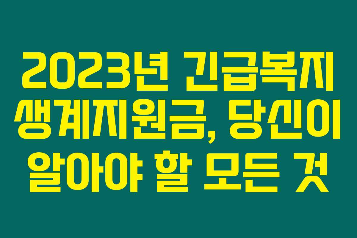 제가 직접 리서치한 바로는, 2023년 긴급복지 생계지원금은 갑작스러운 경제적 위기를 겪고 있는 많은 가구를 위한 중요한 지원 제도입니다. 특히 생계가 어려운 가구를 위해 실질적인 도움이 될 수 있는 다양한 지원 방법과 자격 요건을 갖추고 있습니다. 아래를 읽어보시면 이 지원금의 구체적인 신청 방법과 조건에 대해 상세히 알아보실 수 있습니다.