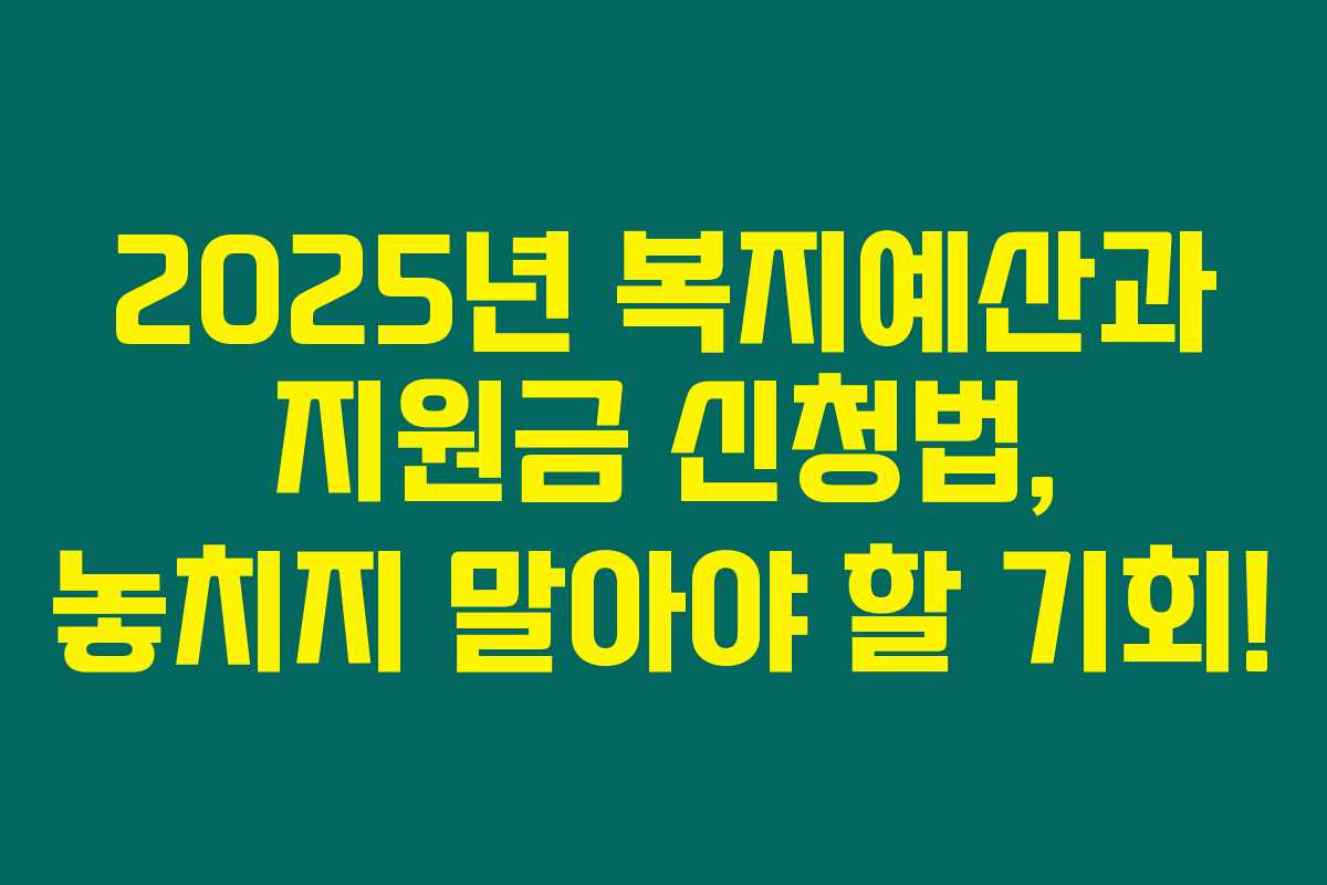 2025년의 예산 지원과 복지예산에 대한 변화를 확인해보세요. 다양한 지원금을 신청하는 방법과 각 혜택을 최대한 이용할 수 있는 팁을 아래를 읽어보시면 상세히 설명드리겠습니다.