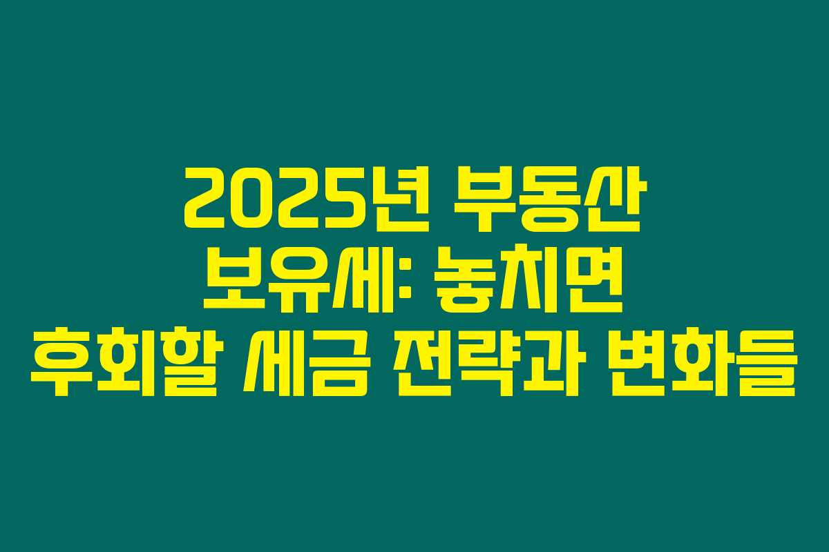 - 2025년 부동산 보유세 변화, 왜 중요할까요?
