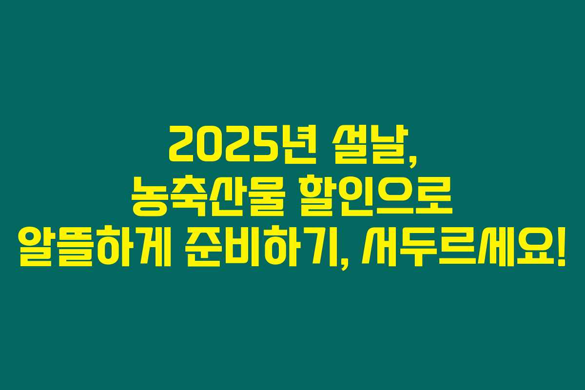 2025년 설날 농축산물 할인은 각 품목별로 다르지만 대체적으로 1월 1일부터 30일까지 진행됩니다.