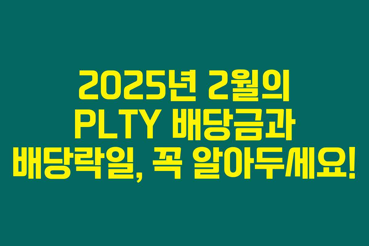 결국, PLTY의 주주들은 다양한 요소를 함께 고려하여 더욱 스마트한 투자를 준비해야 해요. 2025년 2월 PLTY의 배당금과 배당락일 정보를 통해 효과적인 투자 전략을 세워보세요!
