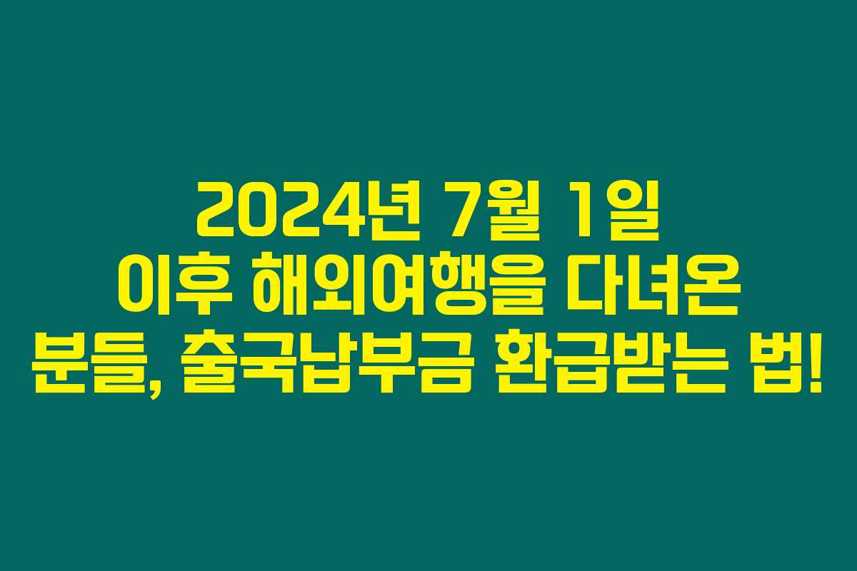 제가 직접 경험해본 바로는, 해외여행 후에 ‘출국납부금 환급’이라는 제도가 있다는 것을 얼마 전 친구를 통해 알게 되었어요. 2024년 7월 1일 이후 해외를 다녀온 분이라면, 출국납부금 환급을 받을 수 있을 가능성이 크답니다. 아래를 읽어보시면 이 도움이 될 만한 정보가 가득하니 놓치지 마세요!