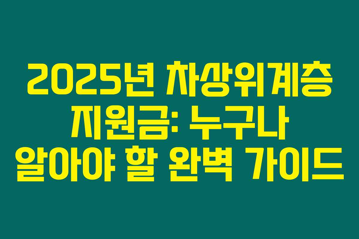 제가 직접 경험해본 바로는, 2025년 차상위계층 지원금은 저소득층 가구에게 생계와 주거, 의료비에 대한 큰 도움을 줄 수 있는 프로그램입니다. 특히 이 지원금의 추가적인 혜택과 신청 방법에 대해 알아보면, 경제적 부담을 덜어주고 안정적인 생활을 영위할 수 있는 기회를 제공합니다. 아래를 읽어보시면 차상위계층 지원금의 모든 내용을 상세히 알고 신청할 준비를 할 수 있습니다.