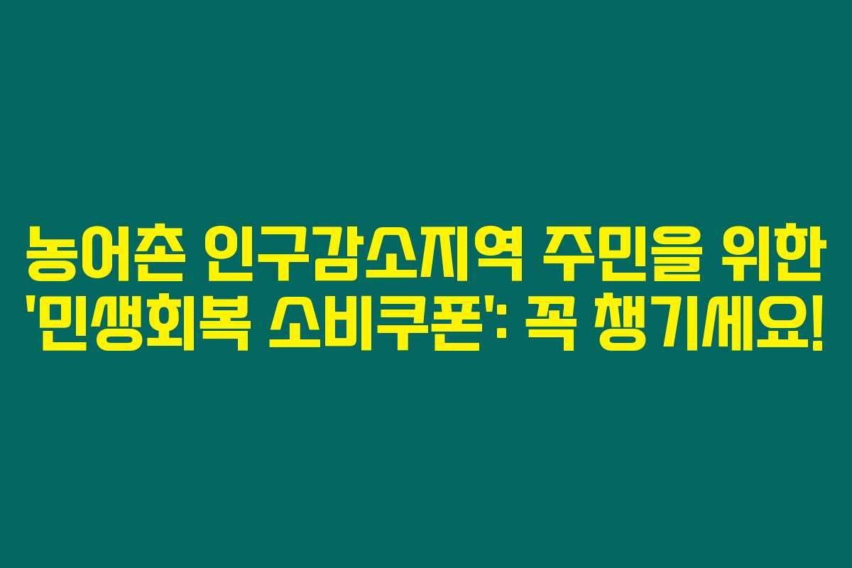농어촌 인구감소지역 주민을 위한 ‘민생회복 소비쿠폰’: 꼭 챙기세요!