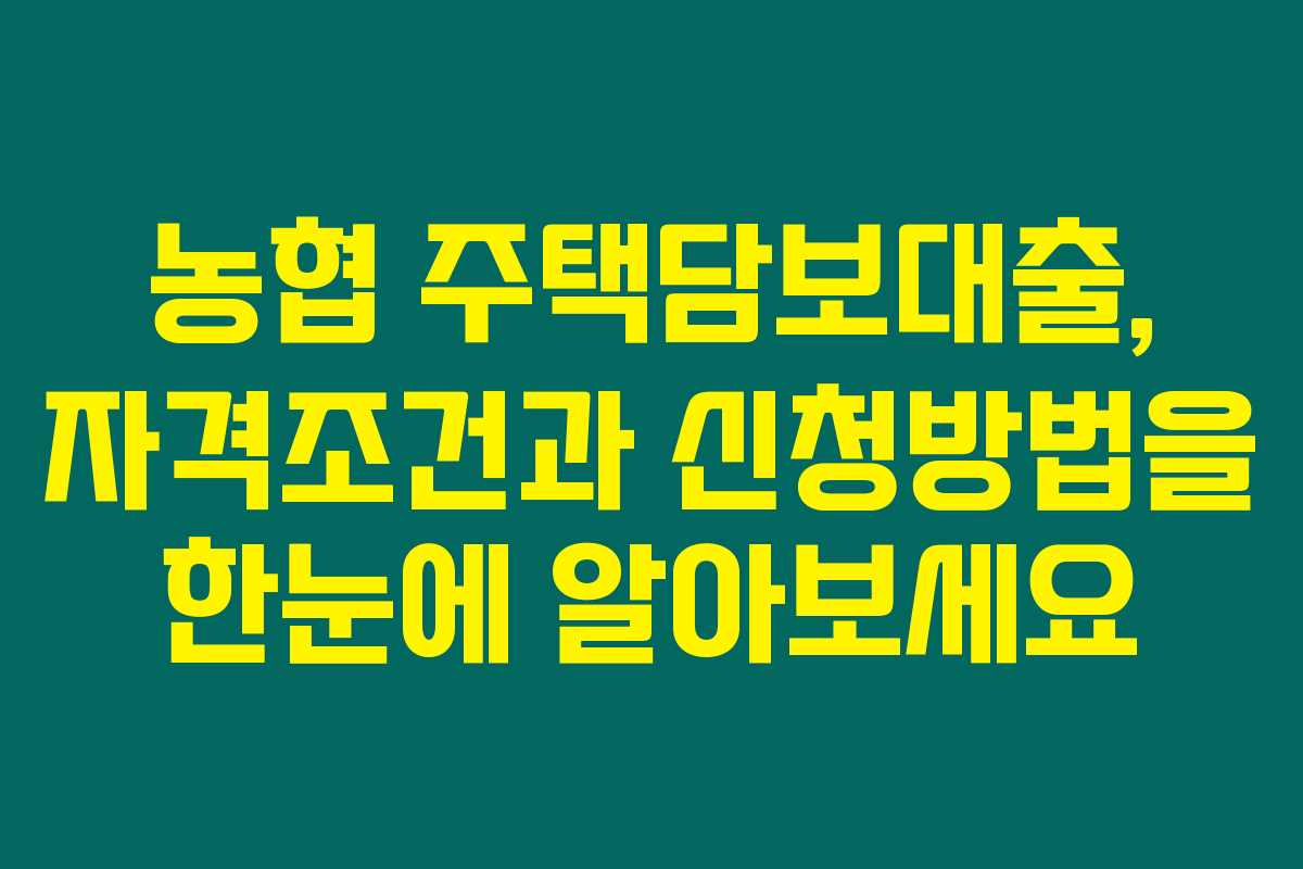 농협에서 제공하는 주택담보대출은 특정 조건을 만족하는 고객에게만 제공되므로, 자격조건을 잘 이해하고 확인해야 합니다.
