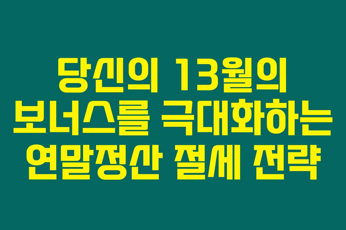 당신의 13월의 보너스를 극대화하는 연말정산 절세 전략