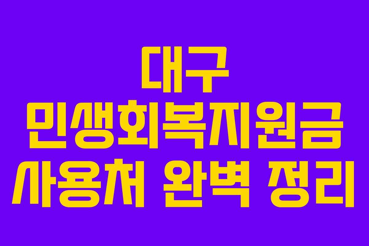 2025년 대구 민생회복지원금 소비쿠폰이 지급될 예정입니다. 이 쿠폰은 누구나 신청할 수 있지만, 사용 가능한 업종과 매장을 정확히 알아야 제대로 활용할 수 있습니다. 본 글에서는 소비쿠폰의 사용처와 신청 방법을 종합적으로 정리해 드리겠습니다.
