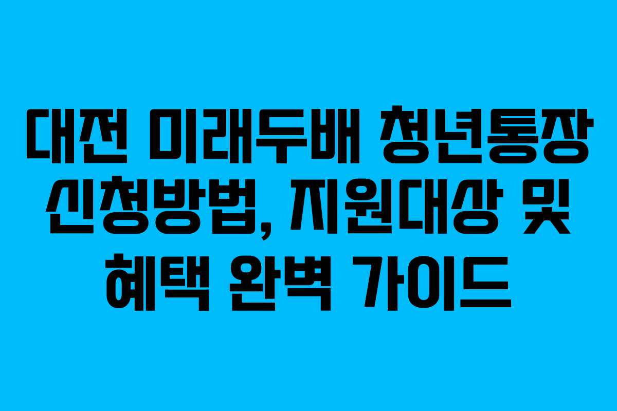 대전 미래두배 청년통장은 청년들에게 큰 도움이 되는 프로그램입니다. 많은 청년들이 이 기회를 통해 자신의 꿈을 이루길 바랍니다!