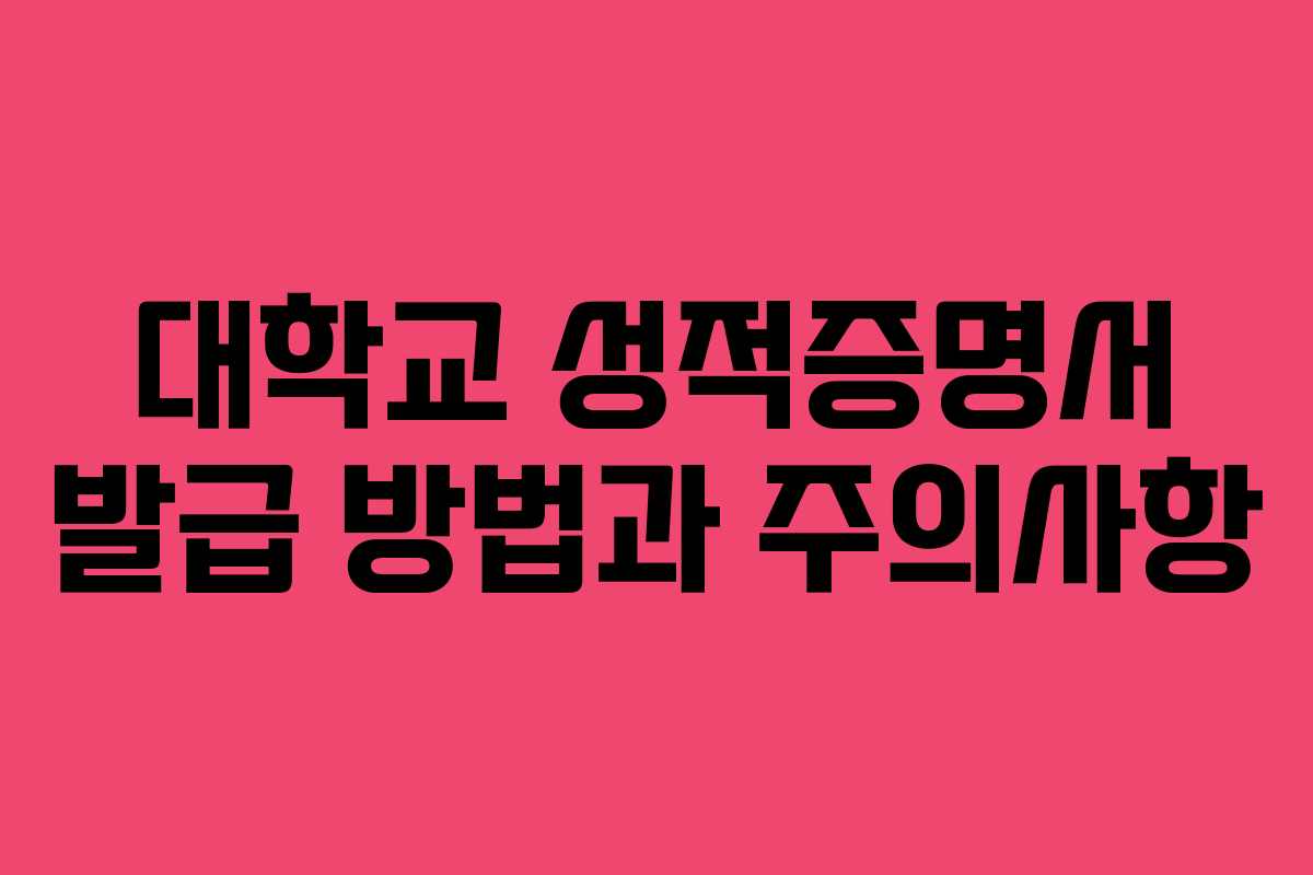 대학교 성적증명서 발급은 학업 경과를 공식적으로 증명하는 중요한 과정입니다. 성적증명서 발급 절차와 주의 사항을 숙지하여 원활한 학업 및 진로 관련 활동에 도움이 되기를 바랍니다. 추가 정보는 각 대학교의 공식 웹사이트를 방문하거나 해당 학사 관리부서에 문의하시기 바랍니다.