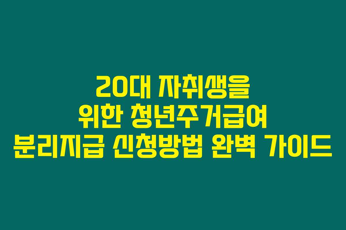 주거에 대한 고민이 많은 20대 자취생들에게 청년주거급여 분리지급 제도는 실질적인 도움이 될 수 있습니다. 이 정보를 바탕으로 잘 활용하시길 바랍니다!
