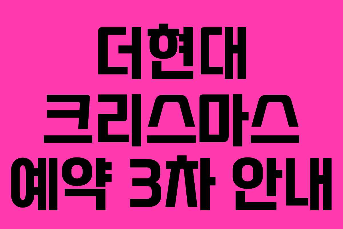 더현대에서 진행하는 크리스마스 예약 3차가 다가오고 있습니다. 이번 이벤트는 많은 이들의 관심을 받고 있으며, 크리스마스 분위기를 만끽할 수 있는 특별한 기회입니다. 예약 정보를 미리 확인하여 놓치는 일이 없도록 하세요.