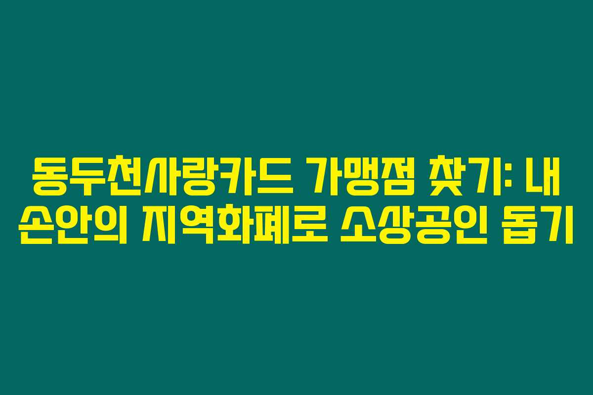 제가 직접 경험해본 바로는, 경기도 동두천시의 지역화폐인 동두천사랑카드는 소상공인에게 큰 도움이 됩니다. 이 카드는 충전 시 최대 10%의 인센티브가 제공되며, 사용처도 다양해 동두천 지역 경제 활성화에 기여하고 있지요. 아래를 읽어보시면 동두천사랑카드를 효율적으로 활용할 수 있는 가맹점 찾기 방법에 대해 자세히 알아보실 수 있습니다.