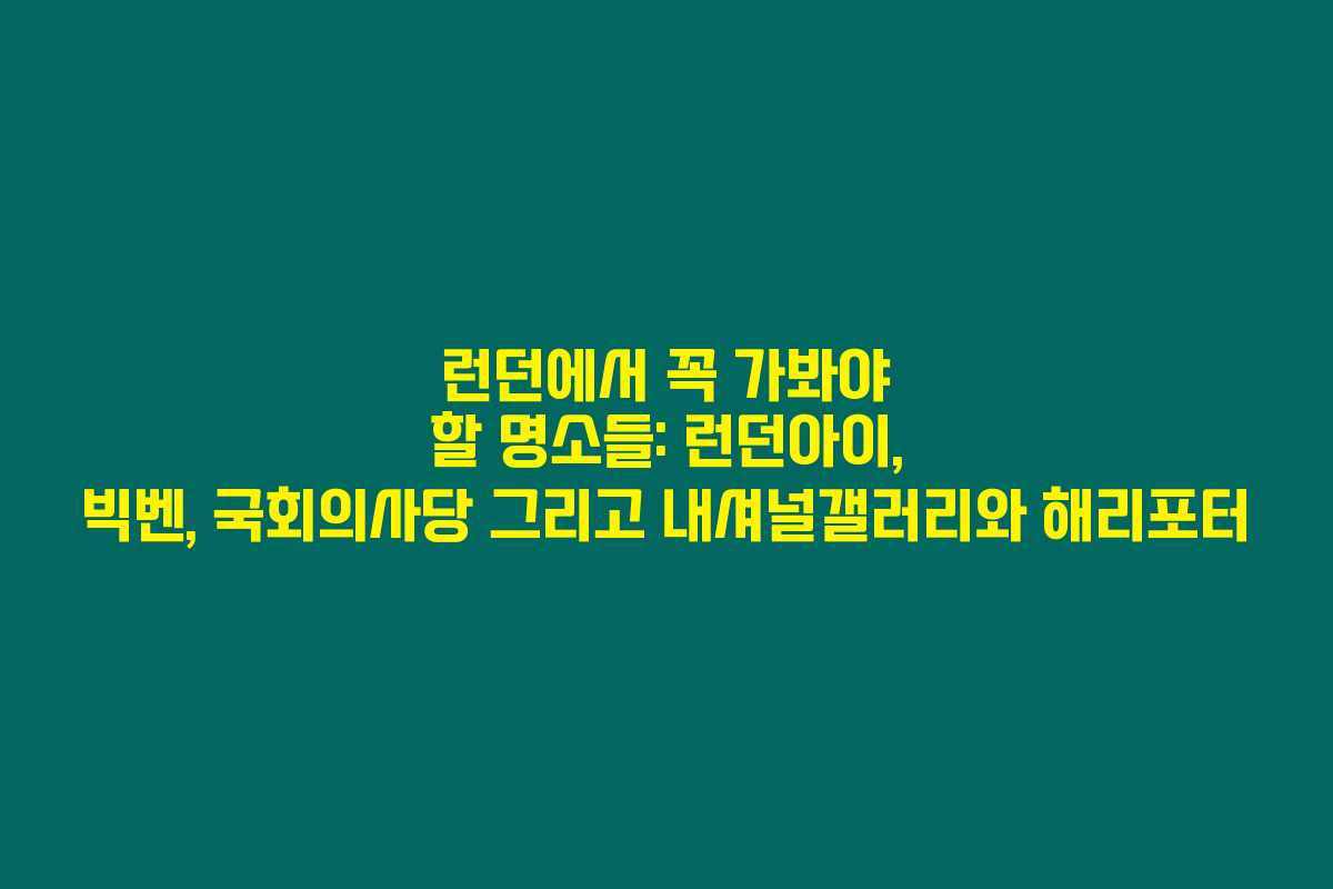 런던은 고풍스러운 건축물과 현대적인 매력이 어우러진 도시입니다. 아래를 읽어보시면 제가 런던에서 경험한 런던아이, 빅벤, 국회의사당, 내셔널갤러리 및 연극 ‘해리포터와 저주받은 아이’에 대한 이야기를 통해 이 멋진 도시의 매력을 느끼실 수 있을 거예요.