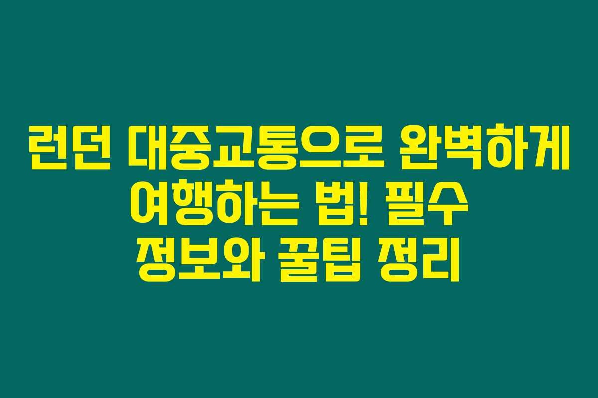 ✅ 결론: 런던 대중교통으로 더 스마트한 여행을!