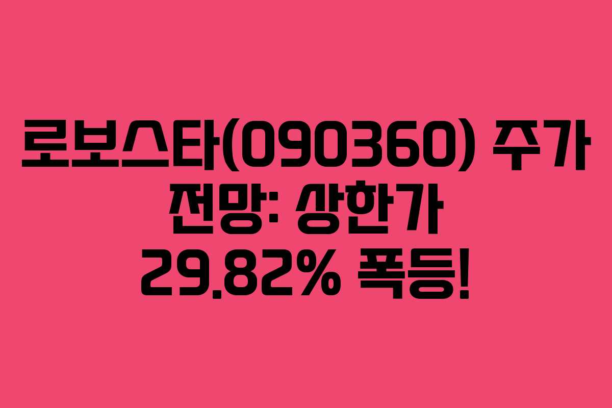 로보스타의 주식은 현재 긍정적인 모멘텀을 가지고 있으며, 투자자들은 신중한 접근이 필요합니다. 최신 실적과 시장 동향을 반영한 전략을 세우는 것이 중요합니다.