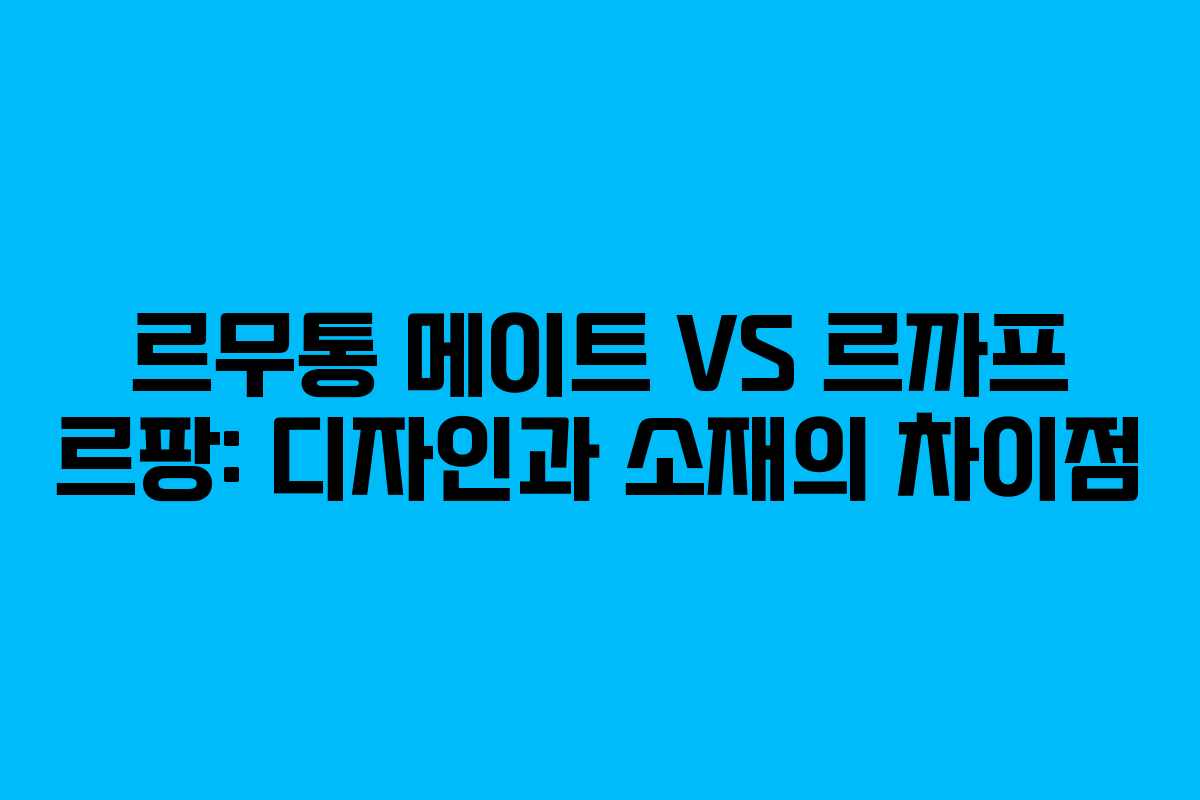 르무통 메이트와 르까프 르팡은 디자인이 비슷하지만, 소재와 가격에서 뚜렷한 차이를 보입니다. 르무통 메이트는 품질을 중시하는 소비자에게 적합하며, 르까프 르팡은 가성비를 중시하는 소비자에게 매력적인 선택이 될 것입니다. 구매 시 자신이 중요시하는 요소를 잘 고려하시기 바랍니다.