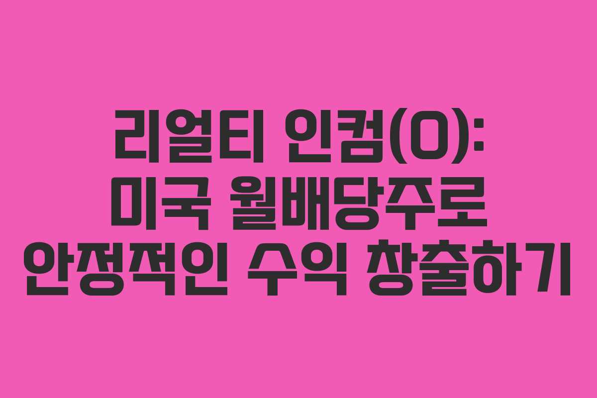 리얼티 인컴(O): 미국 월배당주로 안정적인 수익 창출하기