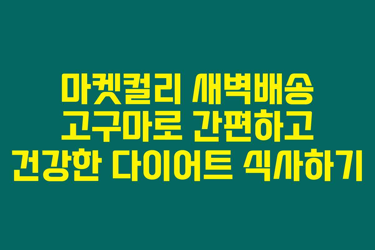 마켓컬리의 새벽배송 고구마는 다이어트 식사를 건강하고 간편하게 만드는 데 큰 도움이 되어요. 고구마의 다양한 활용 방법과 영양가로 건강한 여름을 준비하시고, 바쁜 일상 속에서도 건강을 챙기고 싶으시다면 이 방법이 최상일 것 같답니다. 새로운 건강한 식단을 도전해 보세요!