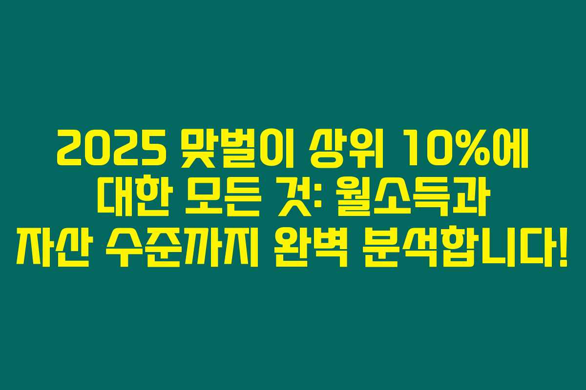 2025 맞벌이 상위 10%에 대한 모든 것: 월소득과 자산 수준까지 완벽 분석합니다!