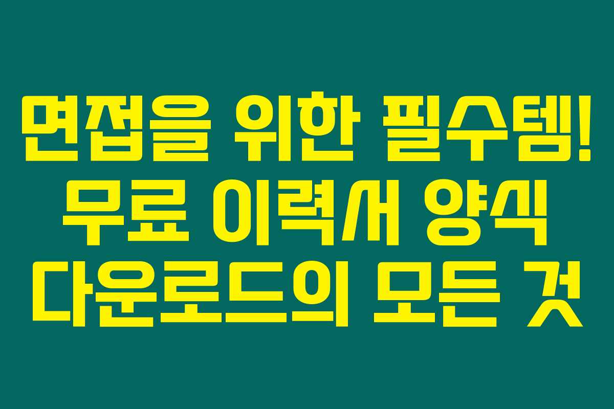 이력서 양식을 다운로드하려면 다양한 구인 사이트에서 로그인 없이도 쉽게 할 수 있어요. 각 사이트의 다운로드 섹션에서 필요한 형식을 선택하면 됩니다.
