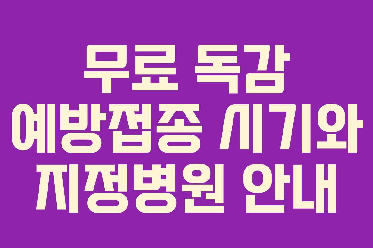 이 정보를 통해 무료 독감 예방접종을 안전하게 받으시기 바랍니다. 매년 독감 예방접종은 중요한 예방 조치이니, 미리 준비하시고 건강을 챙기세요.