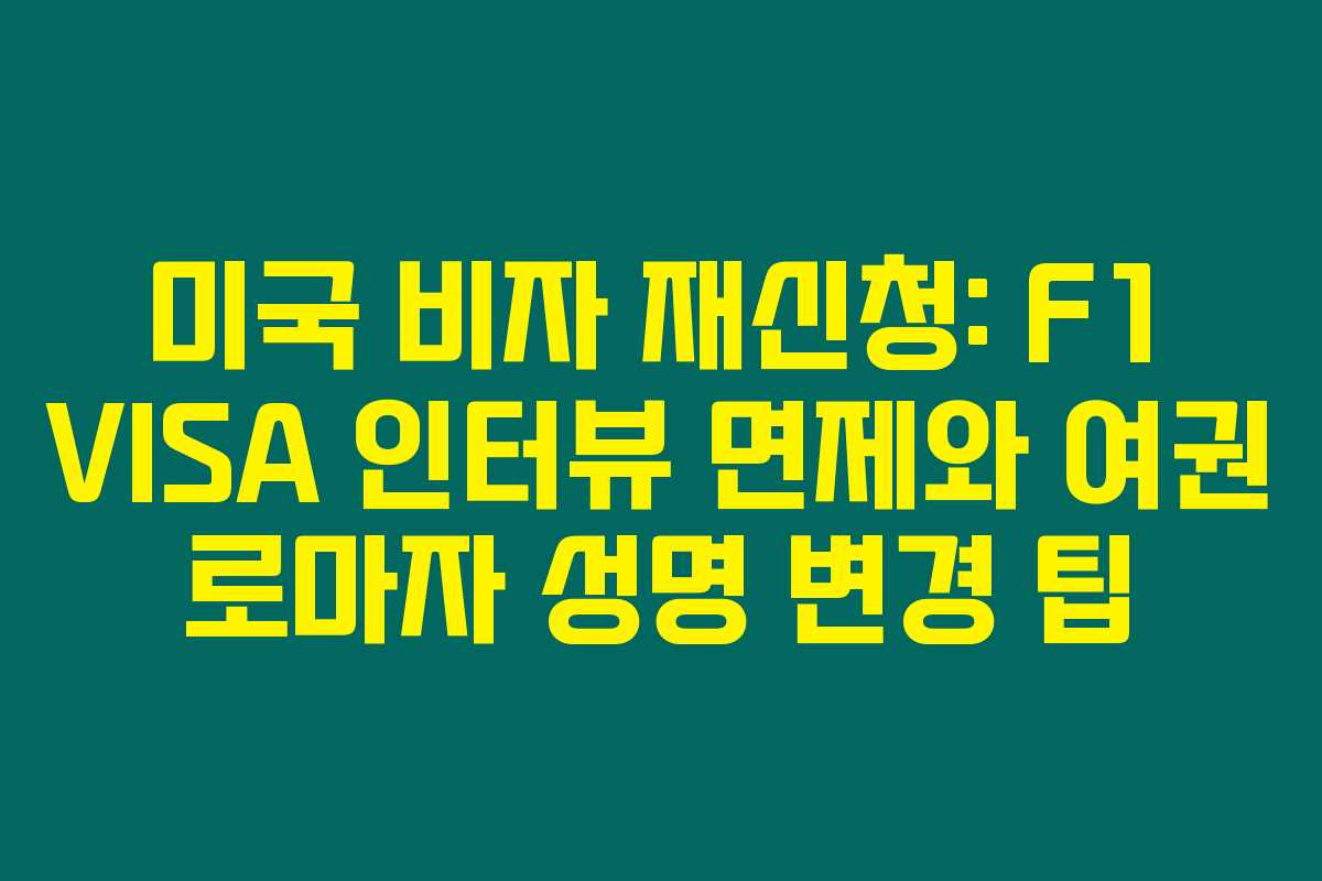 제가 경험해본 바로는, 미국 비자 재신청 과정은 생각보다 복잡할 수 있습니다. 특히 F1 비자를 재신청하려는 학생들의 경우, 인터뷰 면제 조건이나 여권의 로마자 성명 변경 문제 등 여러 가지를 고려해야 합니다. 여권을 빨리 받기 위한 팁까지 정리해봤으니, 아래를 읽어보시면 도움이 될 것 같아요.