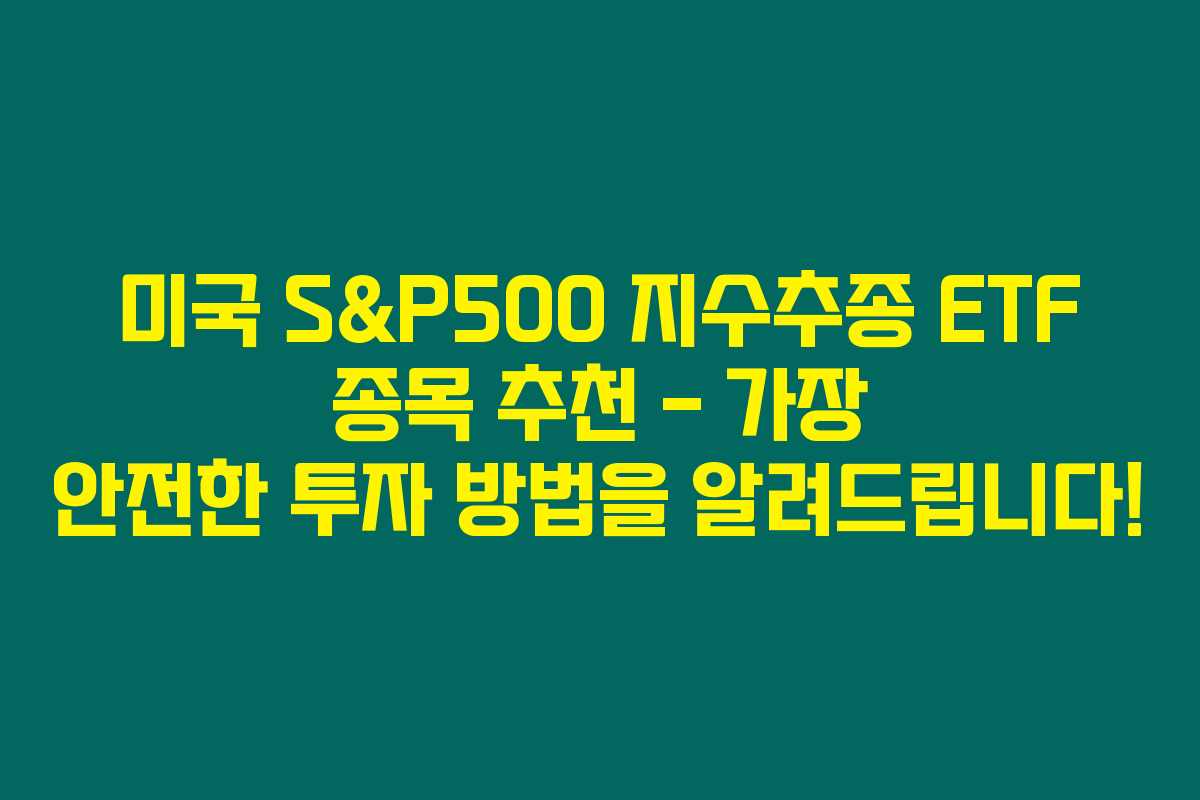 미국 S&P500 지수 추종 ETF를 투자하고 싶으신가요? 혼란스러운 시장에서 안정적이고 꾸준한 수익률을 원하신다면, 이 글을 통해 추천 종목을 확인해 보세요. S&P500 지수를 추종하는 ETF는 장기 투자에 있어 강력한 선택이 될 수 있습니다. 그래서 어떤 ETF를 선택해야 할지 고민하고 계시다면, 아래를 읽어보시면 더 많은 정보와 도움을 받으실 수 있을 거예요.