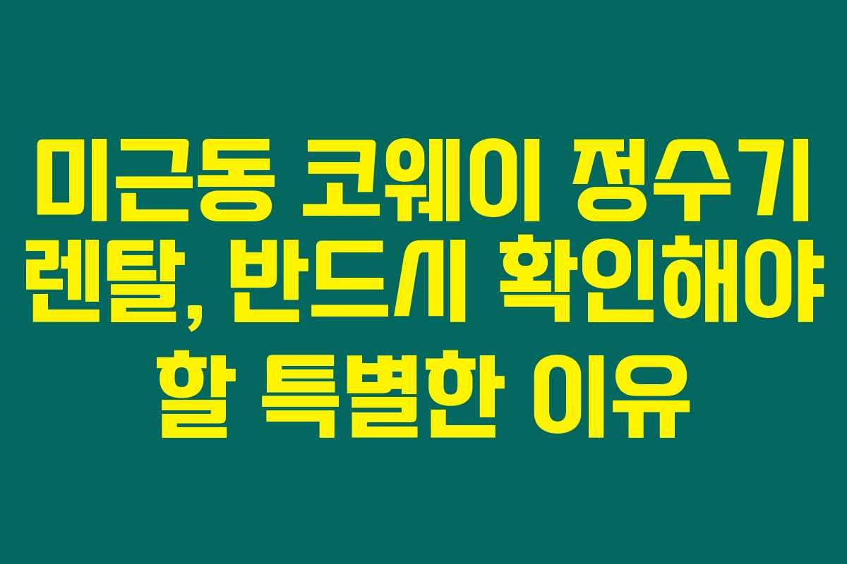 정수기 구매를 고민하고 있다면 꼭 알아야 할 정보가 여기 있습니다. 미근동 코웨이 정수기 렌탈을 고려하고 있다면, 이번 기회를 놓치지 마세요. 최신 제품 아이콘2는 업데이트된 스펙과 다양한 기능으로 가정에서 필요한 모든 것을 충족시킨답니다. 아래를 읽어보시면, 이번 프로모션의 혜택을 놓치지 않아야 할 이유를 알 수 있어요.