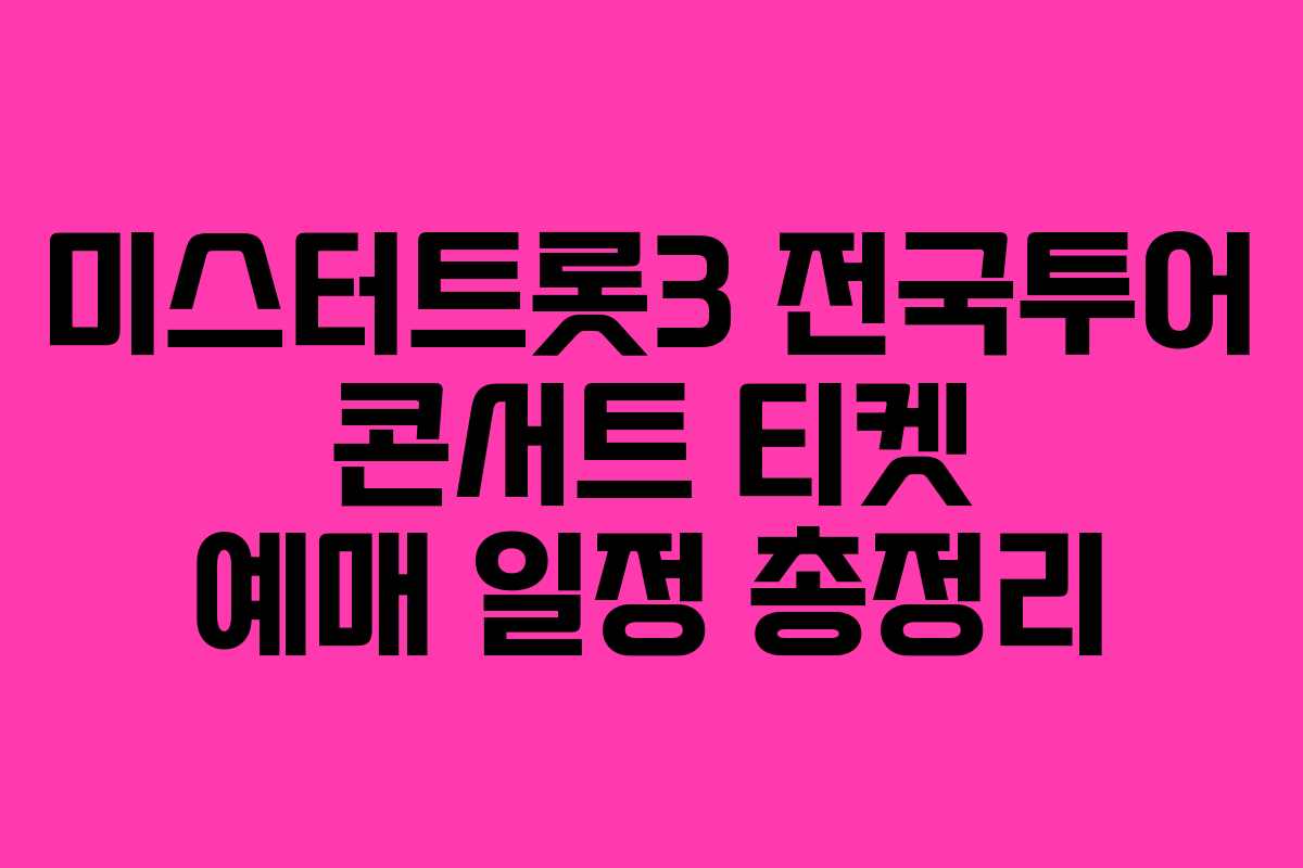 전국투어 콘서트 티켓 예매가 시작됩니다. 방송을 통해 많은 사랑을 받은 가수들의 실연을 직접 관람할 수 있는 기회입니다. 이번 글에서는 미스터트롯3의 전국투어 콘서트 일정과 티켓 예매 정보를 정리했습니다.
