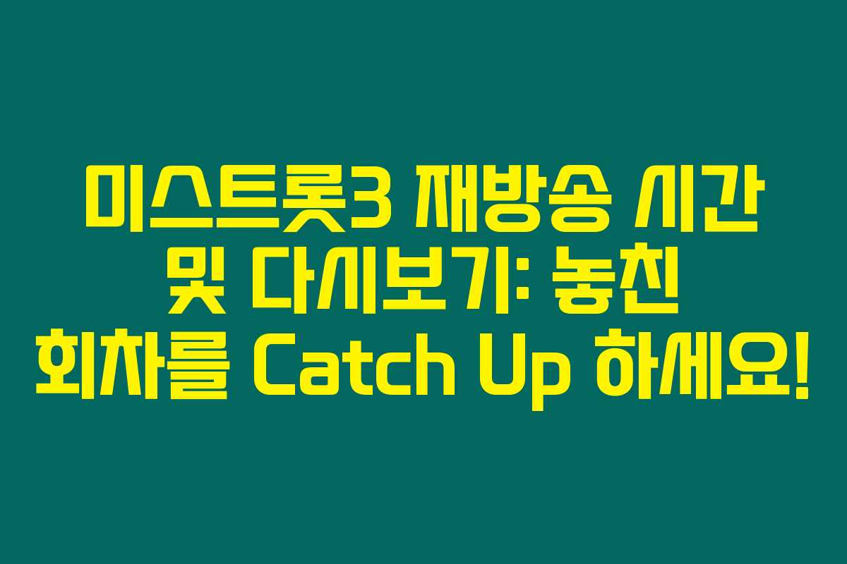 이런 멋진 무대를 놓치셨다면 아쉬움이 크겠죠? 그러니 이제 미스트롯3의 재방송 시간과 다시보기 방법을 마저 확인해보세요.